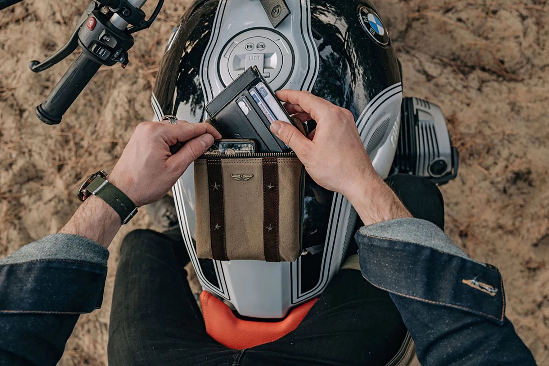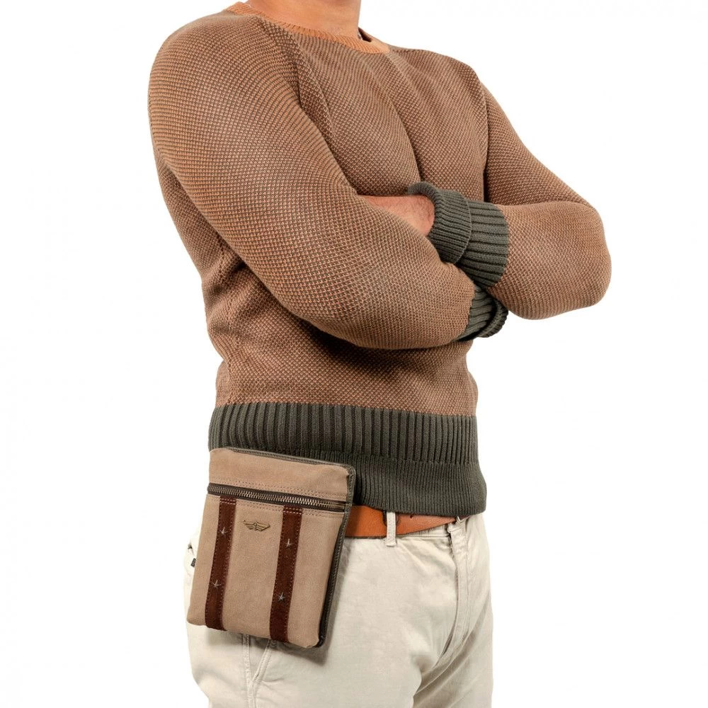 In de magnetische militaire tas kunt u uw benodigde accessoires voor roadtrips en dagelijks gebruik opbergen. Bestaat uit zes neodymiummagneten verborgen op de achterkant voor eenvoudige en snelle bevestiging aan de motortank. Een riempje zorgt ervoor dat je hem om de taille kunt dragen. De Artonvel Military magnetische tas is gemaakt van hoogwaardige, duurzame en waterdichte materialen voor dagelijks gebruik en onder alle omstandigheden, met de volgende kenmerken: Volnerf generfd kalfsleer en suède Sterk synthetisch nylon: waterdicht, lichtgewicht, hoge slijtvastheid Binnenstof waterdicht van buitenaf Accessoires op maat ontworpen door het Franse bedrijf Dorlet 6 neodymium magneten Riemdoorgang Ritssluiting met YKK-schuifregelaar Afmetingen zak: breedte 150 mm – hoogte 185 mm – dikte 40 mm