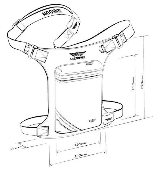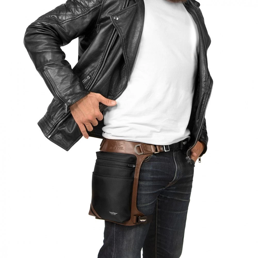 Houd al uw waardevolle spullen dicht bij uw lichaam met deze Artonvel Beentas. Bewaar bezittingen zoals uw telefoon, portemonnee en bijvoorbeeld een brillendoos met uw zonnebril veilig in deze waterdichte en slijtvaste beentas. Door het strakke design en de volledig verstelbare riemen is deze beenbeschermer uiterst comfortabel en ervaart u tijdens het dragen van deze tas volledige bewegins vrijheid.Bij het eerste gebruik kunt u de riemen aanpassen aan uw lichaams omtrek en bepaal de hoogte waarop u hem wilt dragen. Vergeet niet om de bovenste clip aan de tailleband van uw broek te verbinden, zodat deze niet naar beneden glijdt. Zodra deze banden zijn afgesteld, blijft uw Artonvel beentas goed zitten voor toekomstig gebruik.- Gladde volnerf rundleder – Synthetisch vast Nylon: Waterdicht, lichtgewicht en slijtvast – Verstelbare riemen voor het verstellen van het been van de maat (FR) 36-64 – Rits met zelfremmende YKK-schuifregelaar voor optimale veiligheid – Intern gewatteerd compartiment voor een smartphone of 7-inch tablet. – Waterdichte kabeluitgang – Geïntegreerde flesopener in de gesloten lus – Zakformaat: breedte 160mm – 215mm hoogte – dikte 35mm