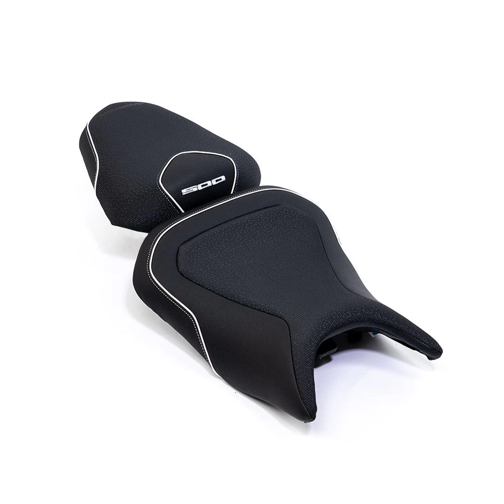 De zadels die wij op voorraad hebben, hebben meestal een neutrale kleur zoals zwart. In andere gevallen kunnen ze een accent kleur hebben die overeenkomt met de lak van de motorfiets waarvoor het zadel geschikt is. Bijvoorbeeld fluorescerend geel dat past bij de gele banden van een Yamaha MT-07, of het levendige groen dat je op veel Kawasaki’s vindt.