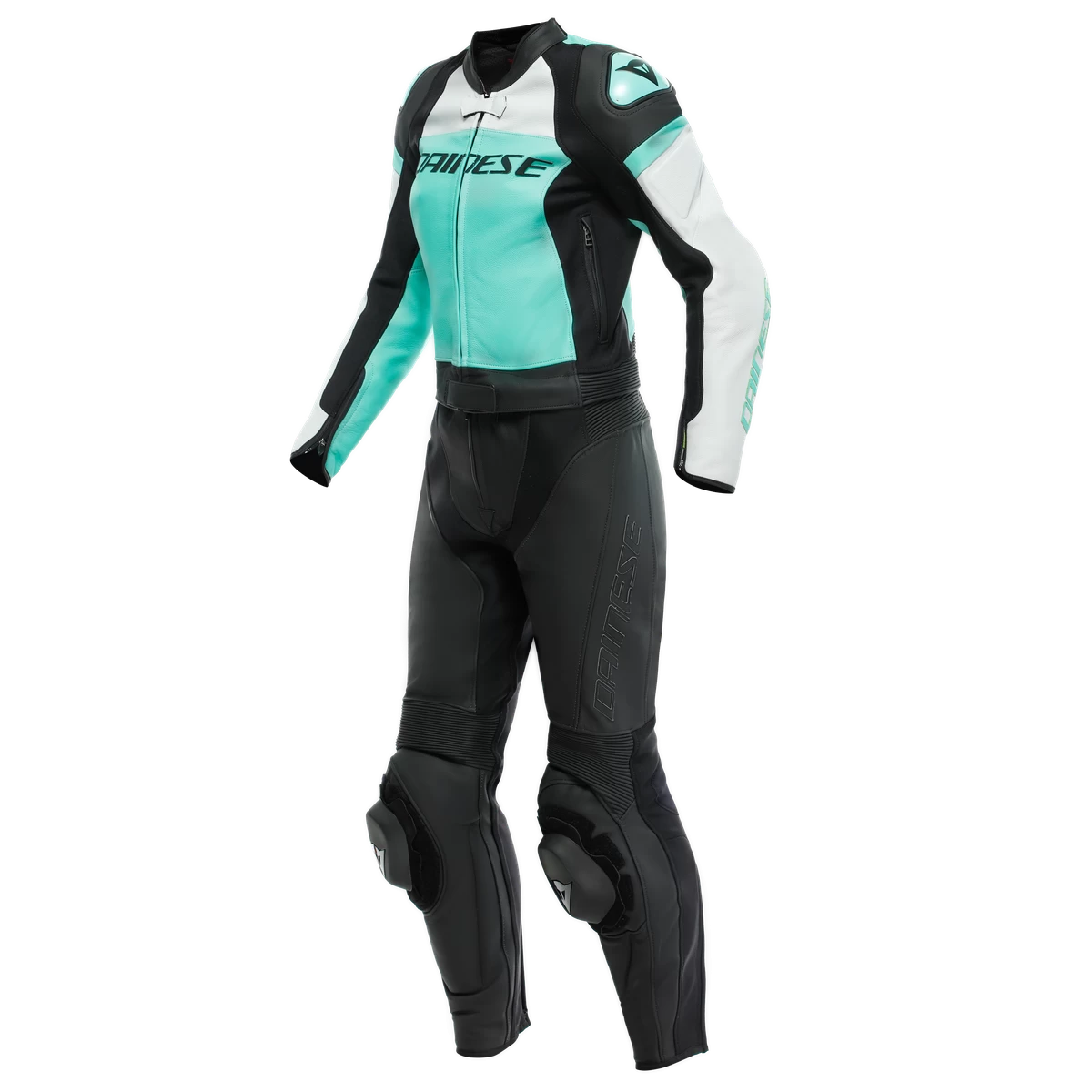 Dainese Mirage Lady Leather 2PCS Suit Black Acqua Green Glacier Gray