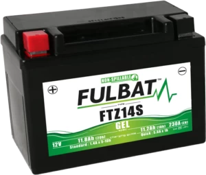 De Fulbat FTZ14S Gel motor accu is onderhoudsvrij. Heeft een spanning van 12V, een capaciteit van 11.8Ah (20) en een startcapaciteit van 230 A (CCA). De FTZ14S GEL is tot 90 graden kantelbaar. De afmetingen zijn 150 mm lang, bij 88 mm breed en 110 mm hoog.