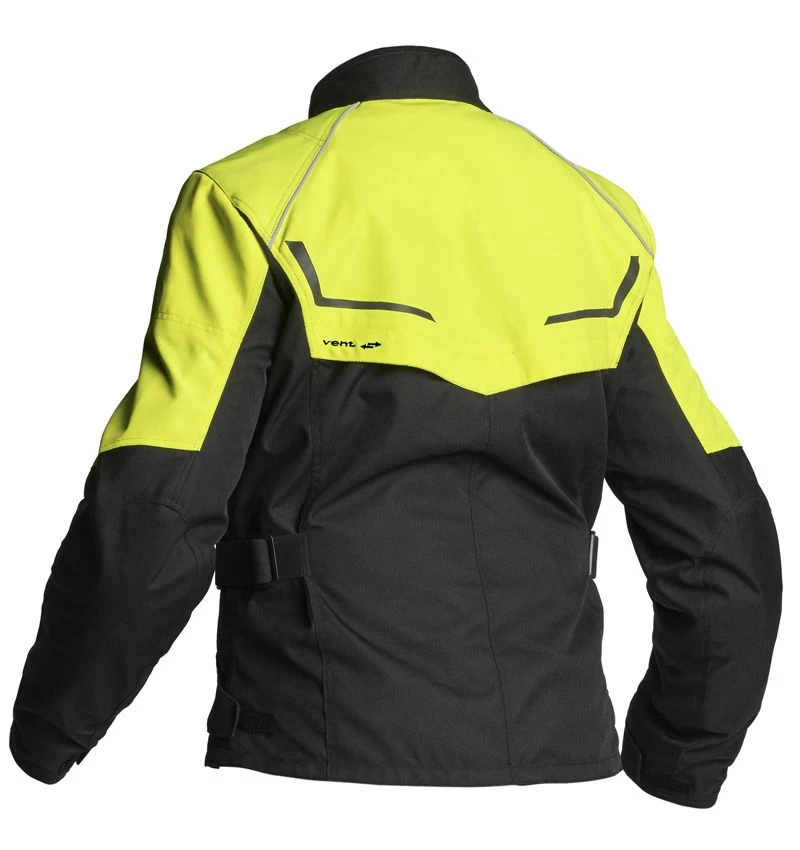Multifunctioneel, ademend, wind- en waterdicht jack van technisch textiel 600D HI-TENACITY PE-WEAVE Dryway ® functiemembraan CE-gecertificeerd volgens klasse “AA” Uitneembare thermische voering Verstelbare niveau 1, CE-gecertificeerde beschermers op schouder en ellebogen Kan worden aangevuld met een rugleuning beschermer Open rugopening voor meer ventilatie Lange verbindingsrits aan broek Verstelbare kraag, taille, zoom en mouwuiteinden