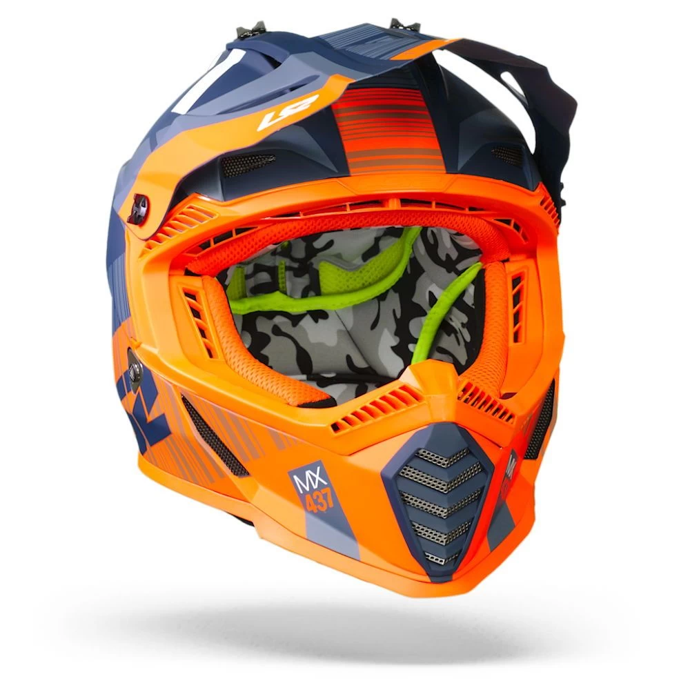 LS2 MX437 Fast Evo Xcode Mat Fl. Oranje Blauw Crosshelm