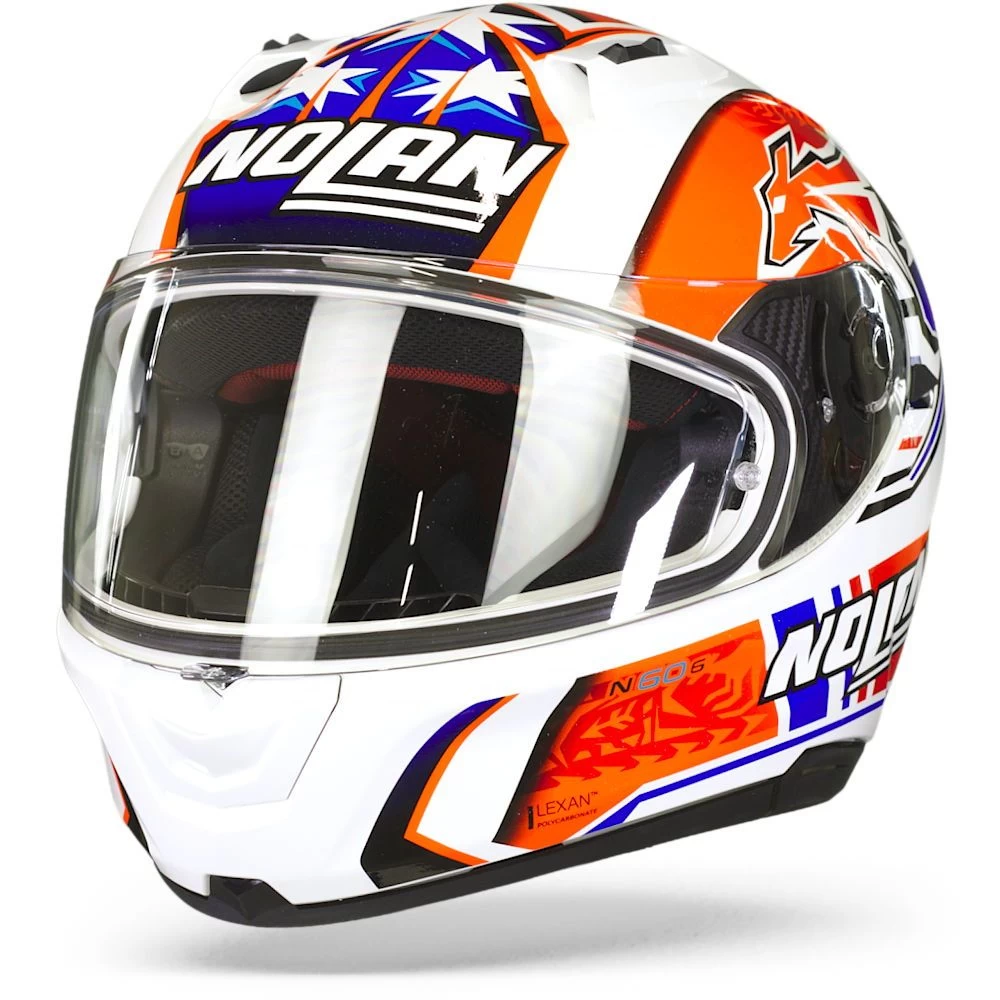 Een helm is misschien wel het meest opvallende onderdeel van jouw motoruitrusting. Vooral integraalhelmen komen voor in een breed scala van kleuren en zelfs replicas van jouw favoriete MotoGP rijders. Als je op zoek bent naar een Blauw, Rood, Wit helm, dan is deze versie van de N60-6 een fantastische keuze! De helm heeft een Replica ontwerp en een Glans afwerking. Vind je de helm wel mooi, maar is de kleur niet helemaal jouw smaak? We hebben hier alle beschikbare kleuren van de N60-6!