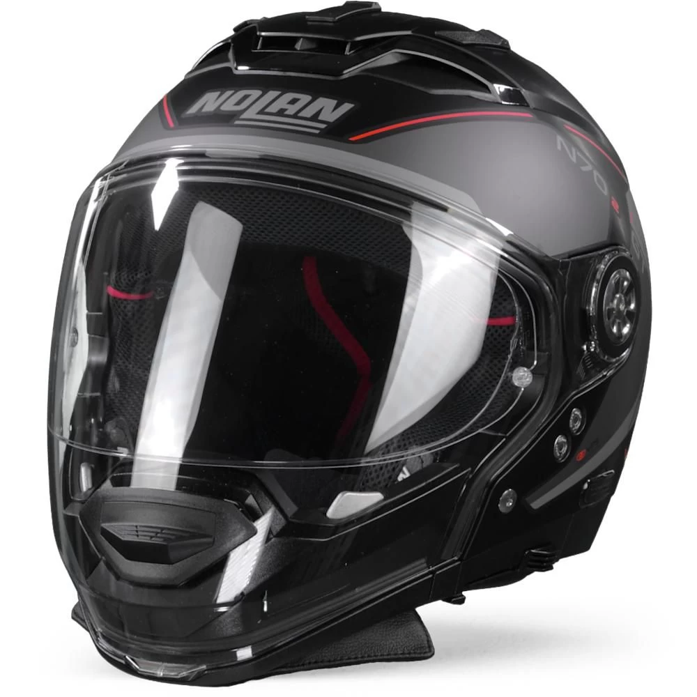 De N70-2 GT is een verbeterde crossover versie van de serie N44. Deze nieuwe Nolan-serie levert een zeer aanpasbaar product, en dat is iets wat we leuk vinden! Het biedt de mogelijkheid om uw helm aan te passen aan uw rijgedrag en type reis, want zes verschillende helmconfiguraties zorgen inderdaad voor veel flexibiliteit! Veel plezier bij het puzzelen met 2 uitneembare elementen: vizier en beschermende kinbeschermer, en creëer de combinatie die u wenst. Alle combinaties zijn zorgvuldig getest door Nolan en zijn P/J gehomologeerd. En mocht dit u nog niet overtuigen, dan is de N70-2 GT ook uitgerust met een ultrabreed vizier (Pinlock inbegrepen) en een LEXAN TM zonnevizier dat zowel kras- als mistbestendig is, alsook instelbaar en afneembaar, zodat u optimaal zicht heeft tijdens zonnige rij-uren.