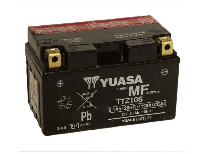 De YUASA TTZ10S motor accu heeft een spanning van 12V, een capaciteit(10H) van 8,6 Ah en een startcapaciteit van 145 A (CCA). De TTZ10S wordt geleverd inclusief zuurpakket. De afmetingen zijn 150 mm lang, bij 87 mm breed en 93 mm hoog.